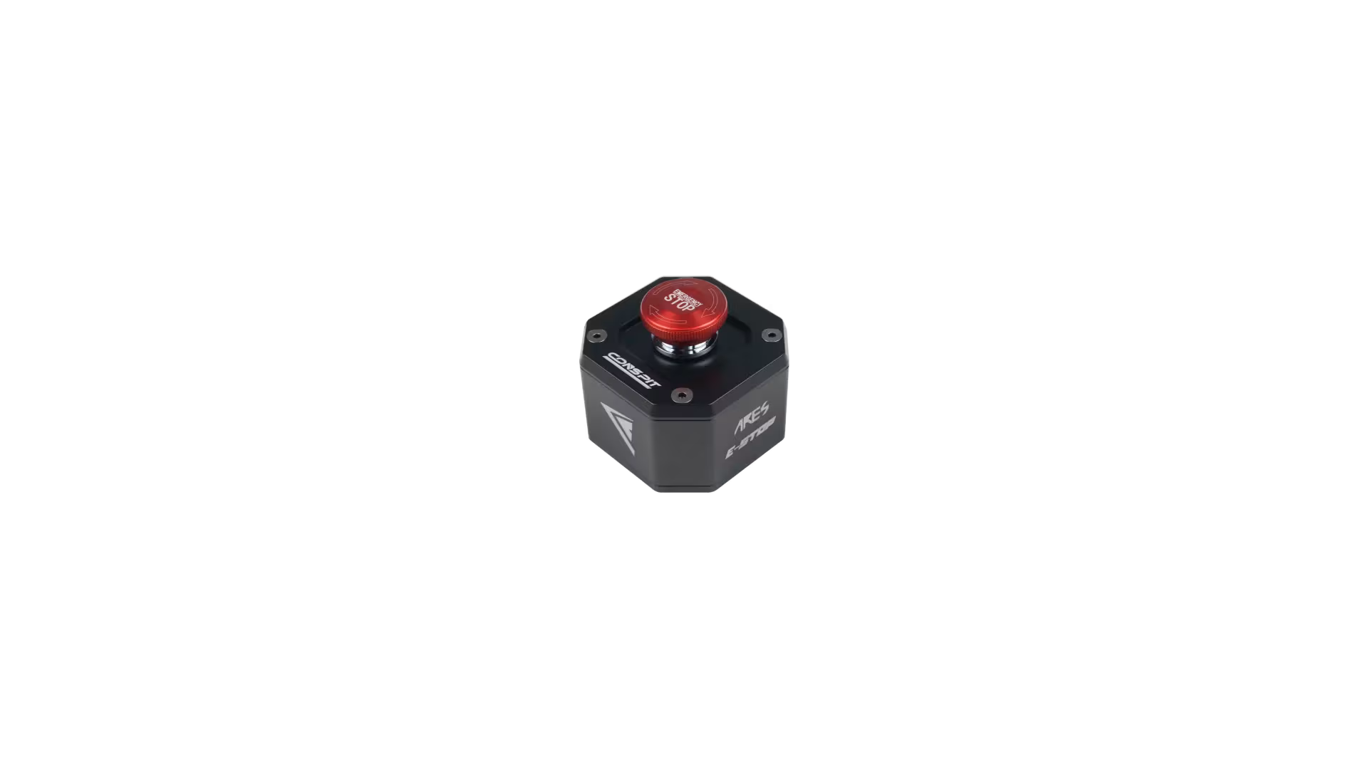 Nouzové tlačítko značky CONSPIT pro základny ARES okamžitě vypne napájení základny a tím nedojde k nechtěným pohybům volantu a proto zajišťuje bezpečnost během jízdy.