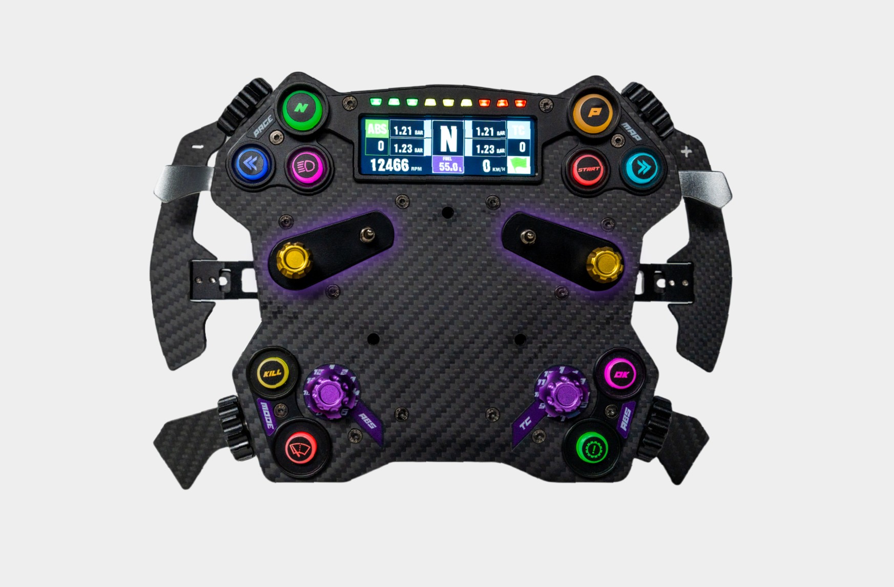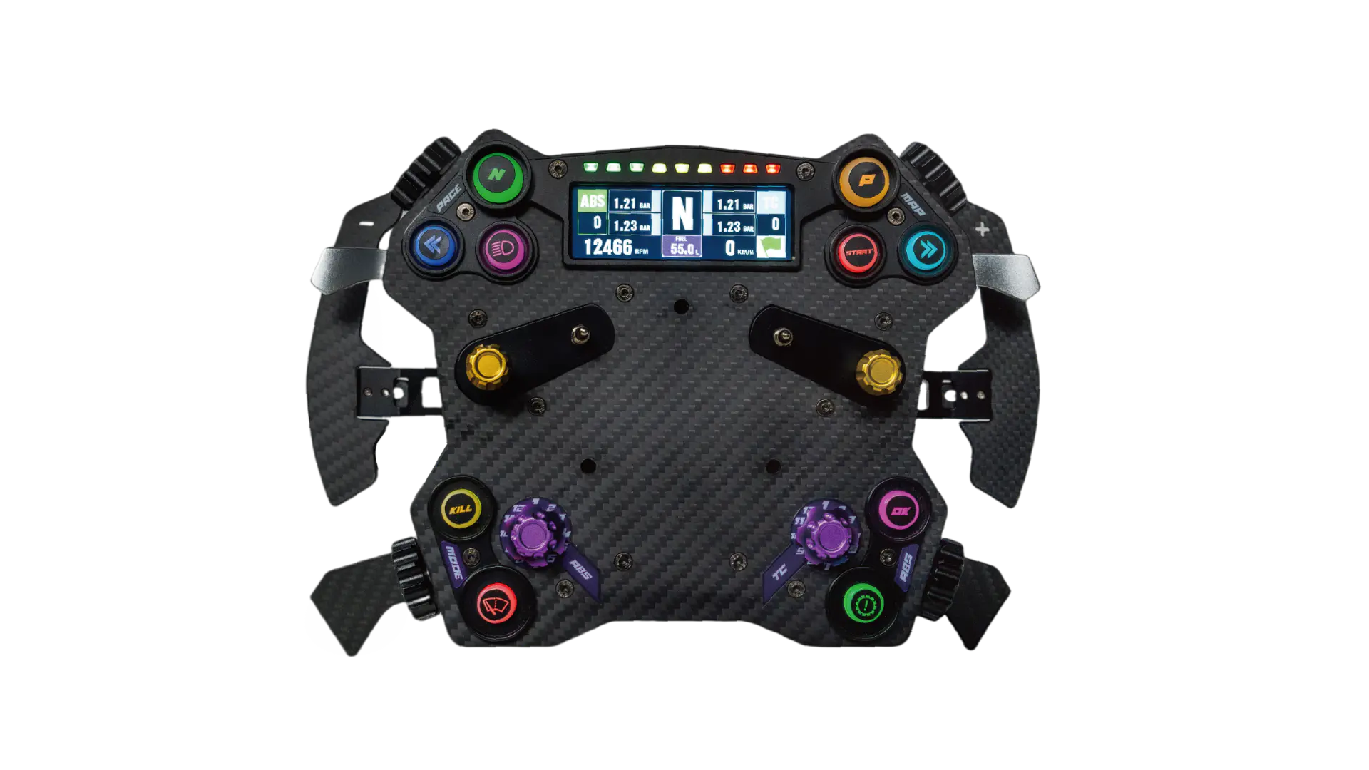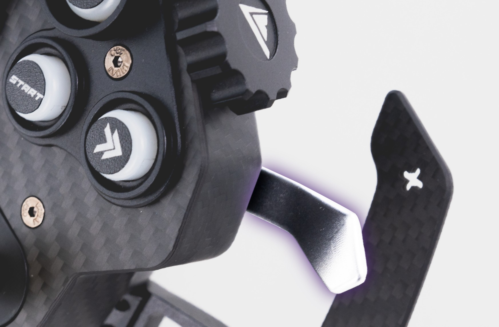 | Asymetrické pádla s dvojitou spojkou Asymetrická pádla, navržená pro závodní použití, nabízejí rychlé uvolnění s primární pádlem a přesné ovládání spojky se sekundární. Lze je vyměnit dle osobních preferencí. S CONSPIT Link 2.0 si můžete užívat přizpůsobitelné nastavení dvojité spojky, nastavení bodu záběru a nezávislé režimy náprav pro plynulý start do závodu. |
